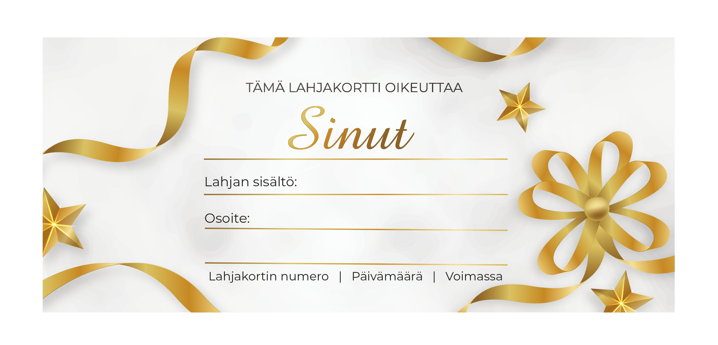 Tilaa lahjakortti suoraan verkkokaupasta, johon pääset alla olevalla painikkeella.